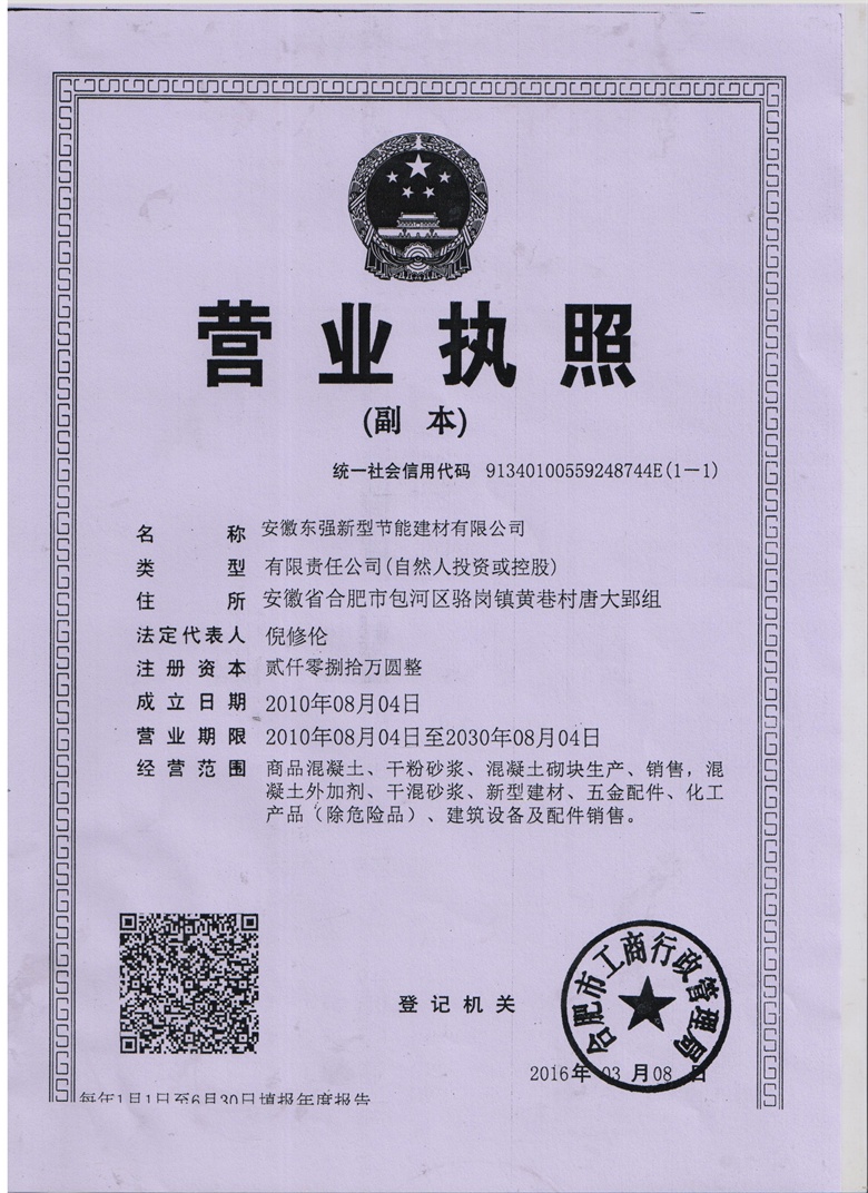 安徽東強新型節能建材有限公司 電話:0551-63489333 地址:安徽省合肥市肥東縣循環經濟示范園 龍興大道與繁華大道交叉口 傳真:0551-63460663 網址:www.cnntrich.cn