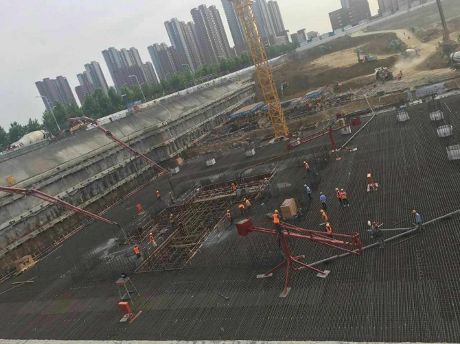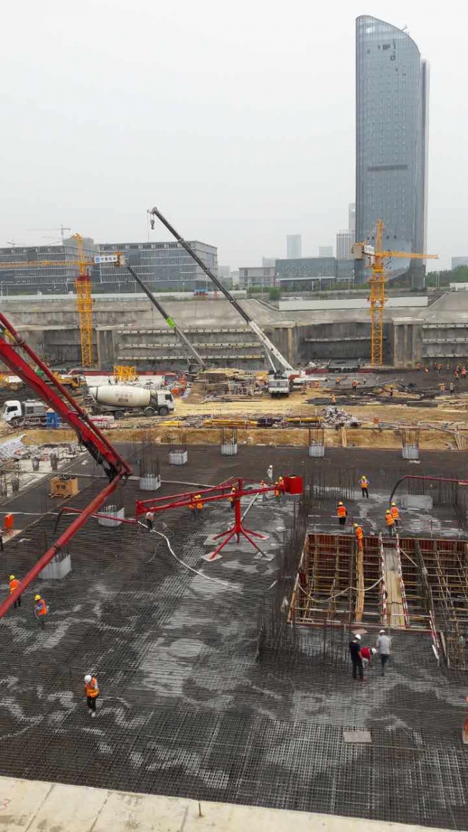 6月23日至24日兩天內我公司順利完成新華保險項目一萬底板,施工期間充分保證該項目底板澆筑的連續性,以及澆筑過程混凝土質量、和易性能穩定,未出現任何堵泵、退料等問題。充分體現了我公司對大體積大方量工程的生產、運輸以及質量保證能力。